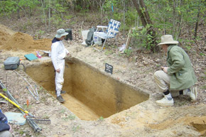 Through the Archaeological Society of Virginia, Johnson became familiar with the Cactus Hill site in rural Sussex County, about one hour south of Richmond. In the early 1990s, Johnson started doing research at Cactus Hill, along with volunteers from the Fairfax County Archaeology Program and the society, often spending weeks at a time on site.