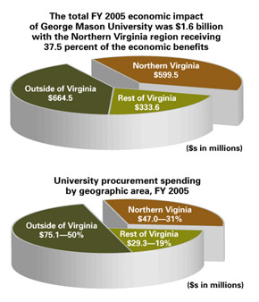 What would Northern Virginia be without George Mason University? While the answer to this question is not clear-cut, a new study by School of Public Policy professor Stephen Fuller shows that the university’s total economic impact to the Commonwealth of Virginia in fiscal year 2005 was $1.6 billion—with the Northern Virginia region receiving almost $600 million.